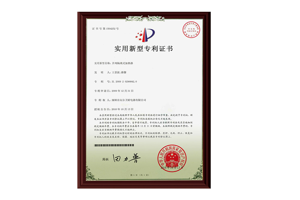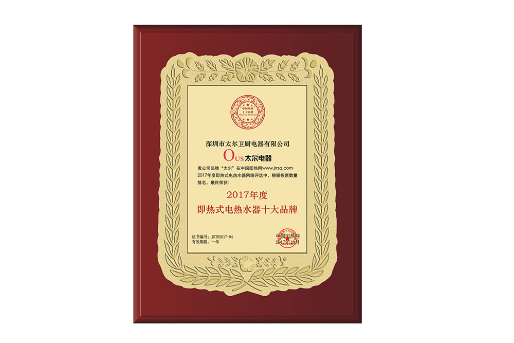 2000年11月成立以來(lái),太爾電器作為快熱式電熱水器行業(yè)的技術(shù)先鋒,一直專(zhuān)注于為廣大用戶(hù)提供“安全、節(jié)能、快速、精美、環(huán)?!钡臒崴餮邪l(fā)理念。2003年太爾預(yù)即混合技術(shù)成功問(wèn)世,將儲(chǔ)水式熱水器和即熱式熱水器的加熱技術(shù)完美結(jié)合, 為用戶(hù)提供了節(jié)能、快速的產(chǎn)品解決方案。特別是2009年,成功發(fā)明并運(yùn)用的“賽騰”鋁合金鑄體發(fā)熱專(zhuān)利技術(shù),徹底解決了易結(jié)水垢和易腐蝕漏電的行業(yè)難題,將快熱式行業(yè)售后服務(wù)標(biāo)準(zhǔn)提升到一個(gè)新的臺(tái)階,引領(lǐng)行業(yè)進(jìn)入嶄新的時(shí)代。